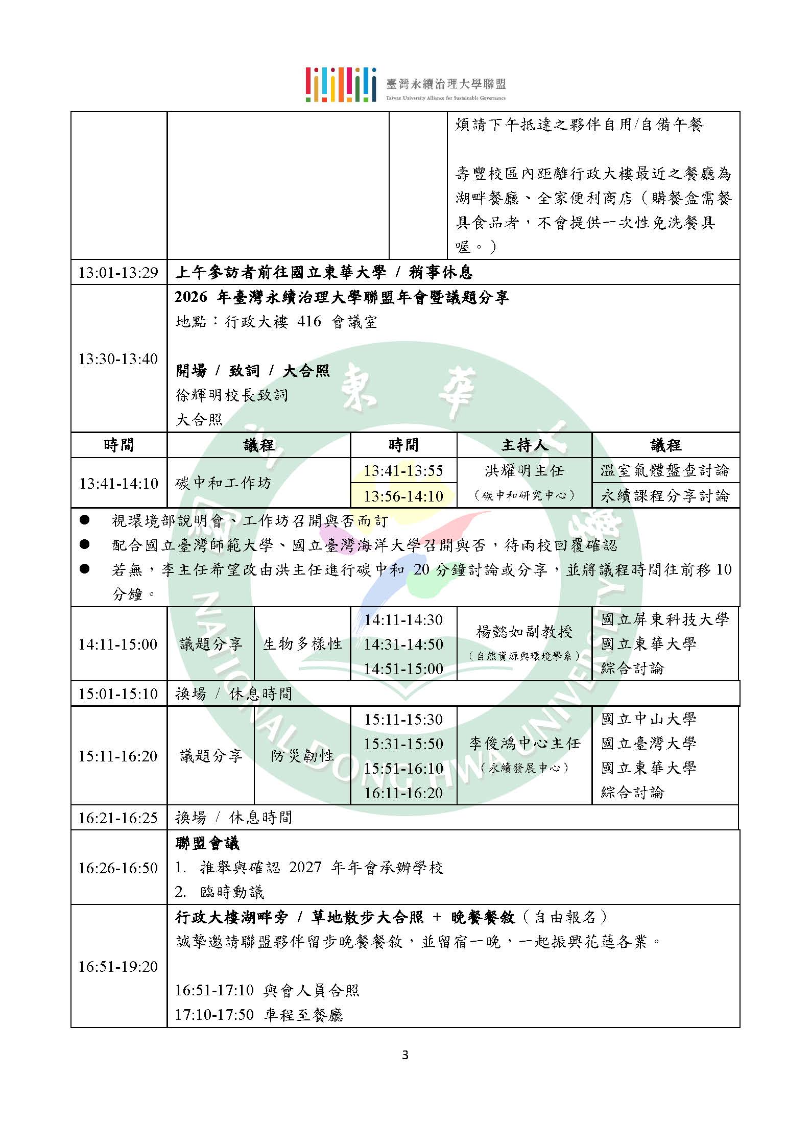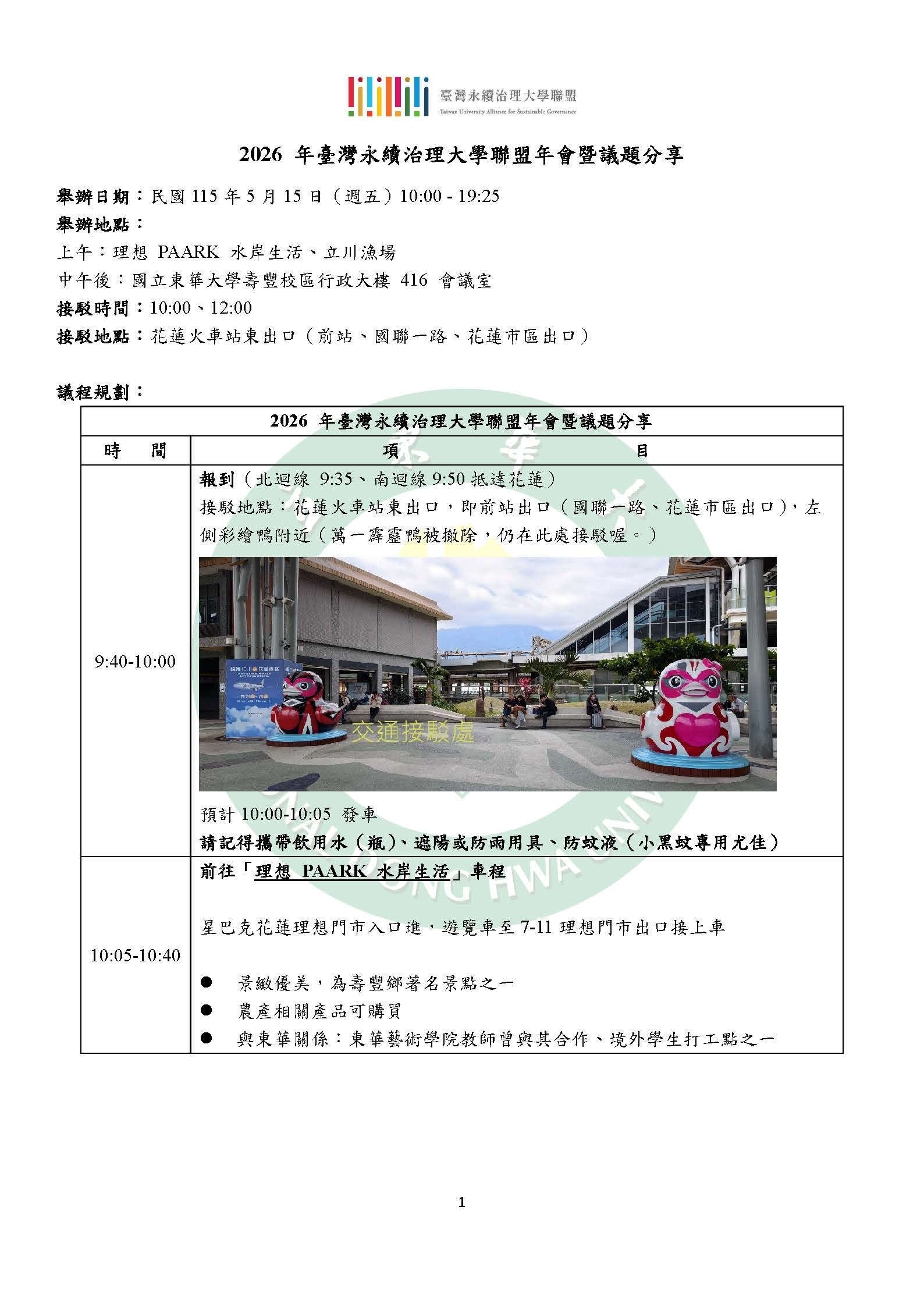 聯絡資訊:國立東華大學永續發展中心李莉莉小姐,電話:03-890-5920,E-mail:sd@gms.ndhu.edu.tw