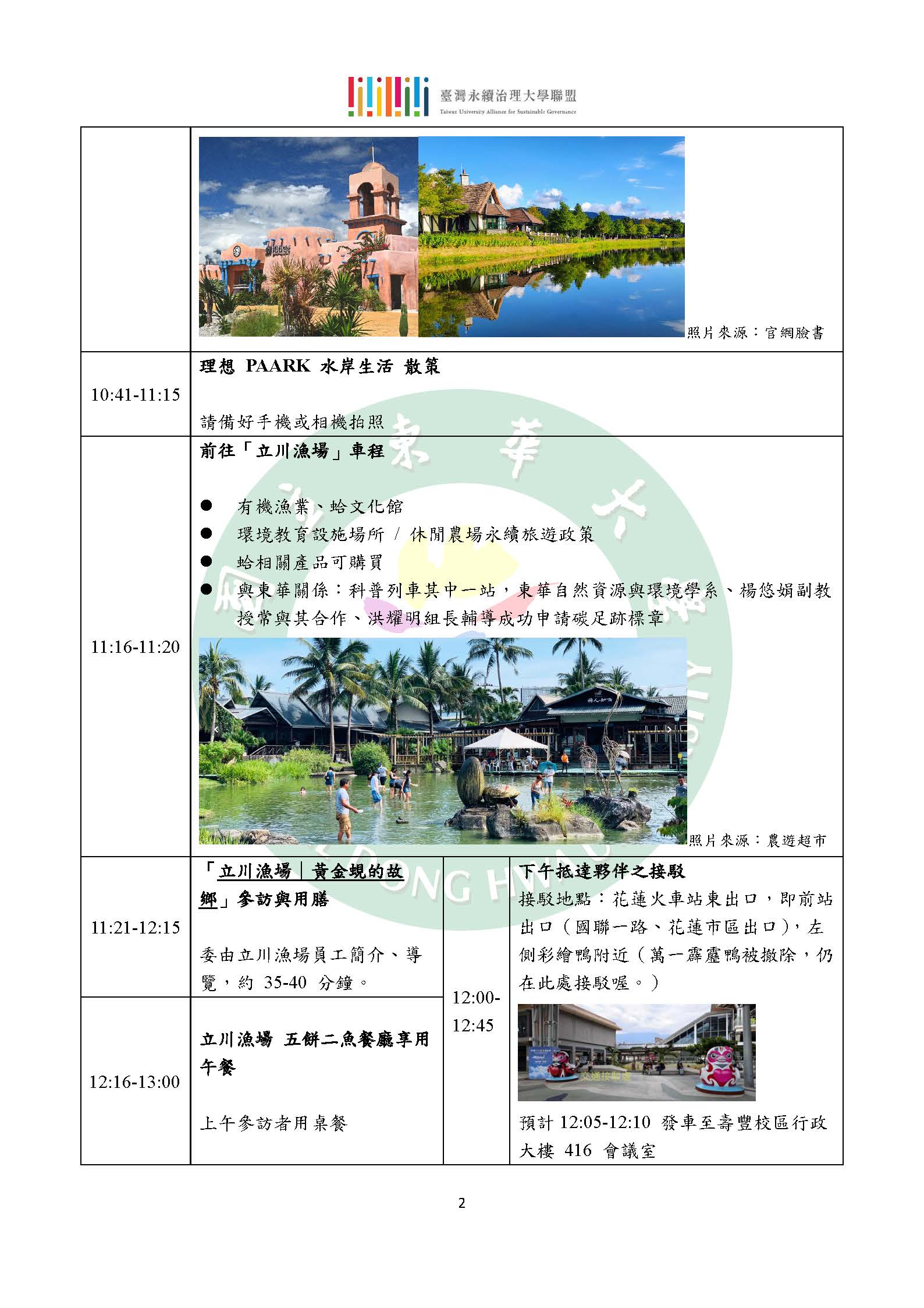 另外,為呈現國立東華大學「在地服務」之共好社會貢獻,安排校外實地參訪行程。